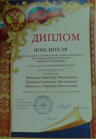 Победитель в региональном конкурсе методических материалов "Мой родной край".